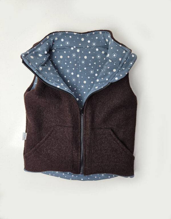 Walkweste in braun, komplett gefüttert mit Jersey grau mit Sternhimmel